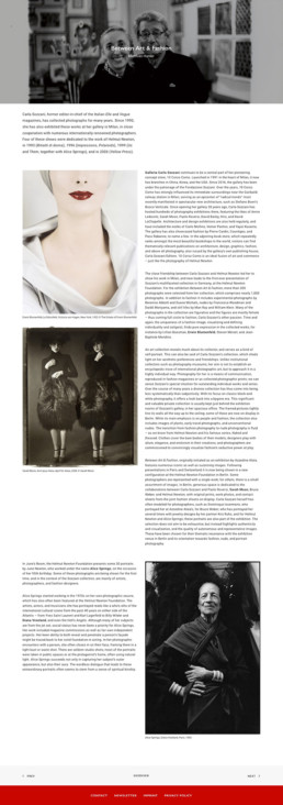 Seit 2004 präsentiert die Helmut Newton Foundation das Werk ihres berühmten Stifters. Auf Newtons ausdrücklichen Wunsch hin werden dort auch andere Künstlerinnen und Fotografinnen eingeladen, mit seinem Werk in einen Dialog zu treten. Die Ausstellungsseiten der Website spiegeln diesen Dialog und das kuratorische Konzept der Stiftung wider.